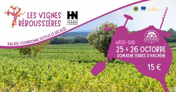 Les Vignes Réboussières auront lieu le samedi 25 octobre à la tombé de la nuit pour finir en nocturne et le dimanche 26 octobre en journée au Domaine Terres d’Hachène à Saint Nazaire des Gardies.